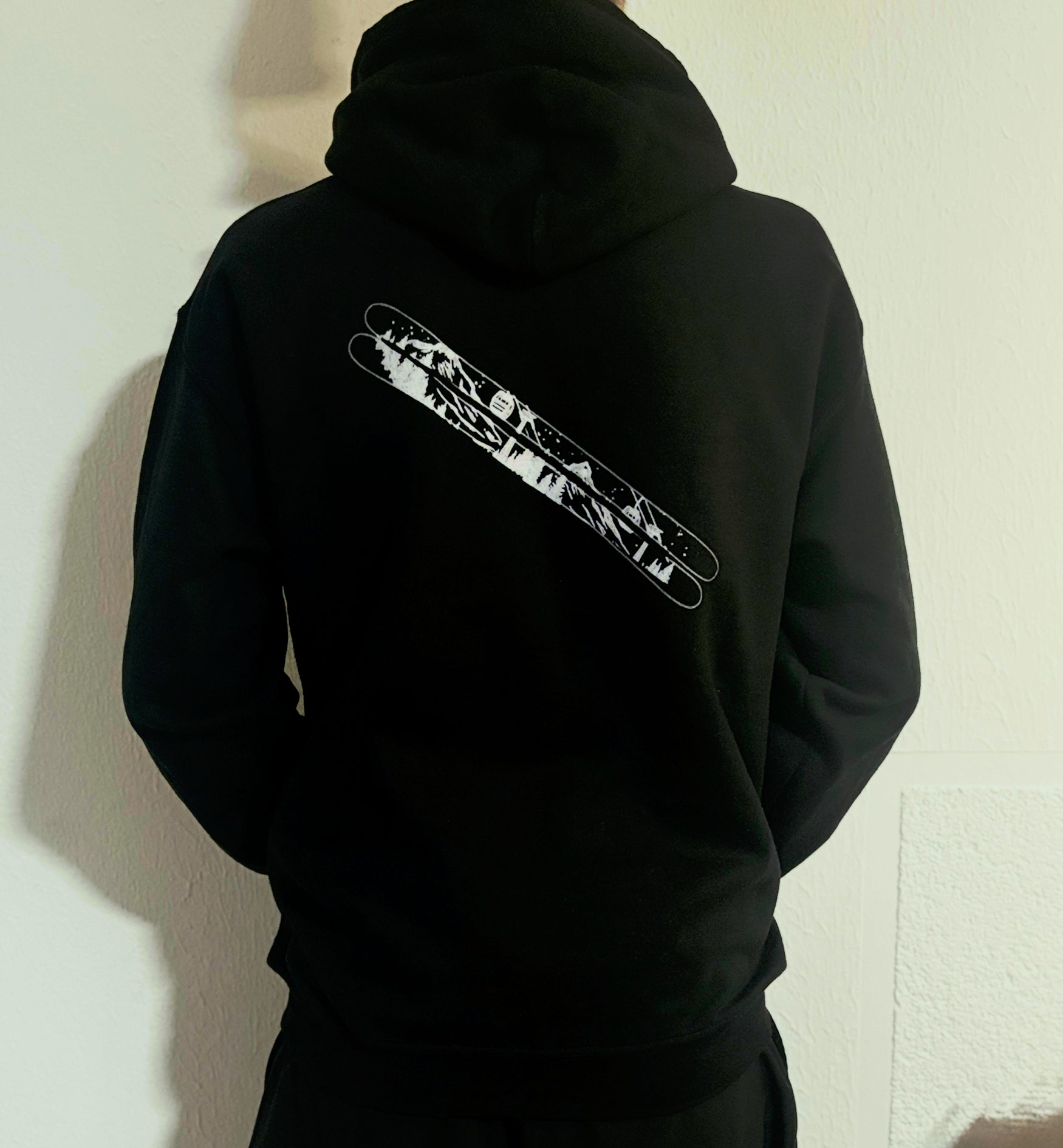 The hoodie features a clean, modern design with a logo displayed on the front, giving it a simple yet bold look. On the back, it showcases a unique and eye-catching graphic that adds personality and flair. Whether you're carving down snowy trails or hanging out with friends, this design makes a statement and stands out in any setting.